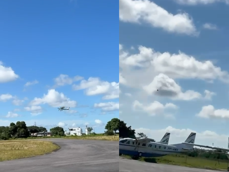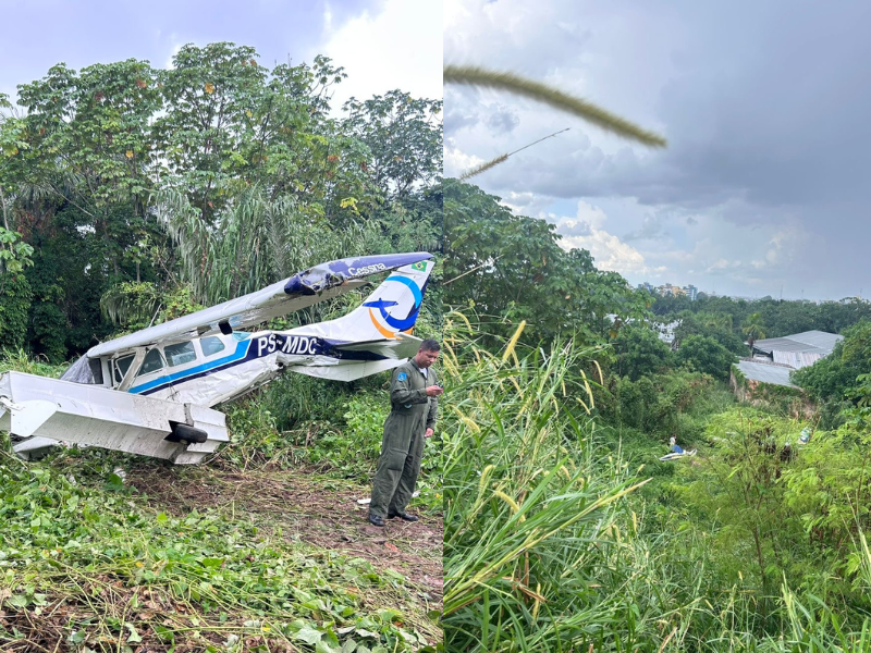 Avião sai da pista sob forte chuva e assusta moradores, em Manaus; VÍDEO