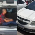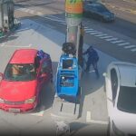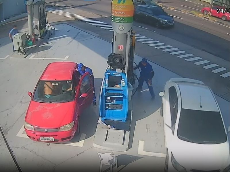 Câmeras de segurança flagraram o momento em que o condutor aproveita distração do frentista para…